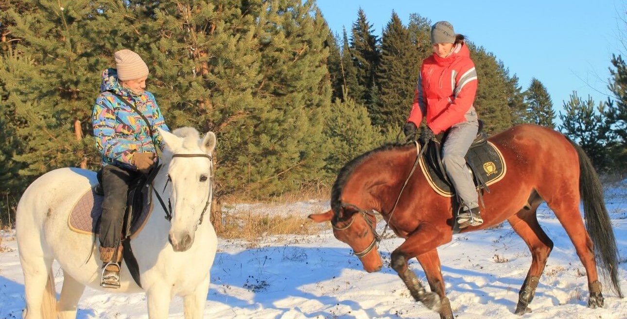 Записаться на прогулкуКонная прогулка для двоих на 2 часа, Две лошади для романтической прогулка (выходные-праздники)